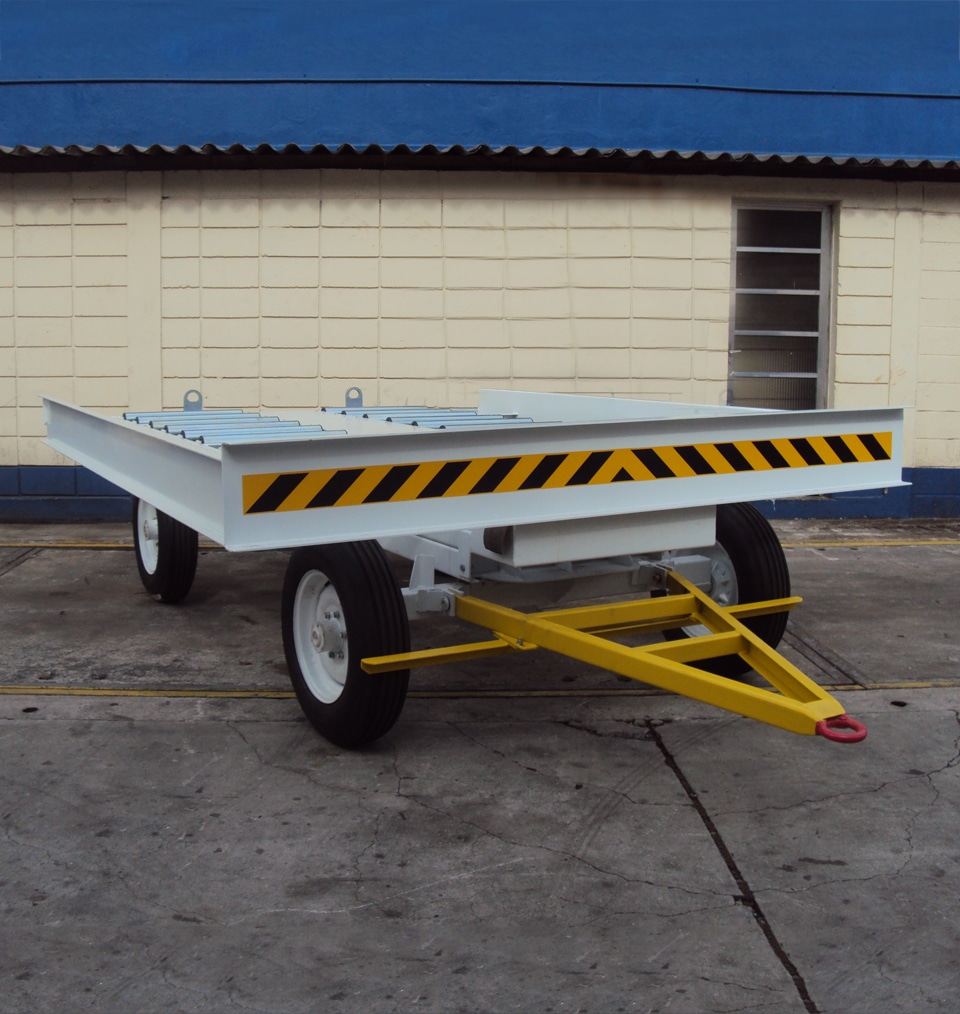 Os dollies foram projetados para o transporte de contêineres e pallets aeronáuticos entre a aeronave e o terminal de carga.