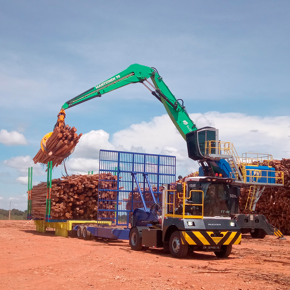o TT-40 é um equipamento robusto, projetado para atender as operações rigorosas da indústria e celulose, desenvolvido para garantir eficiência, segurança e durabilidade na movimentação de cargas pesadas dentro dos pátios industriais, áreas de estocagem e processos logísticos de transporte de toras e fardos de celulose.