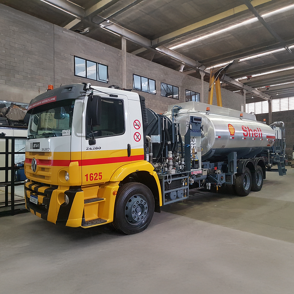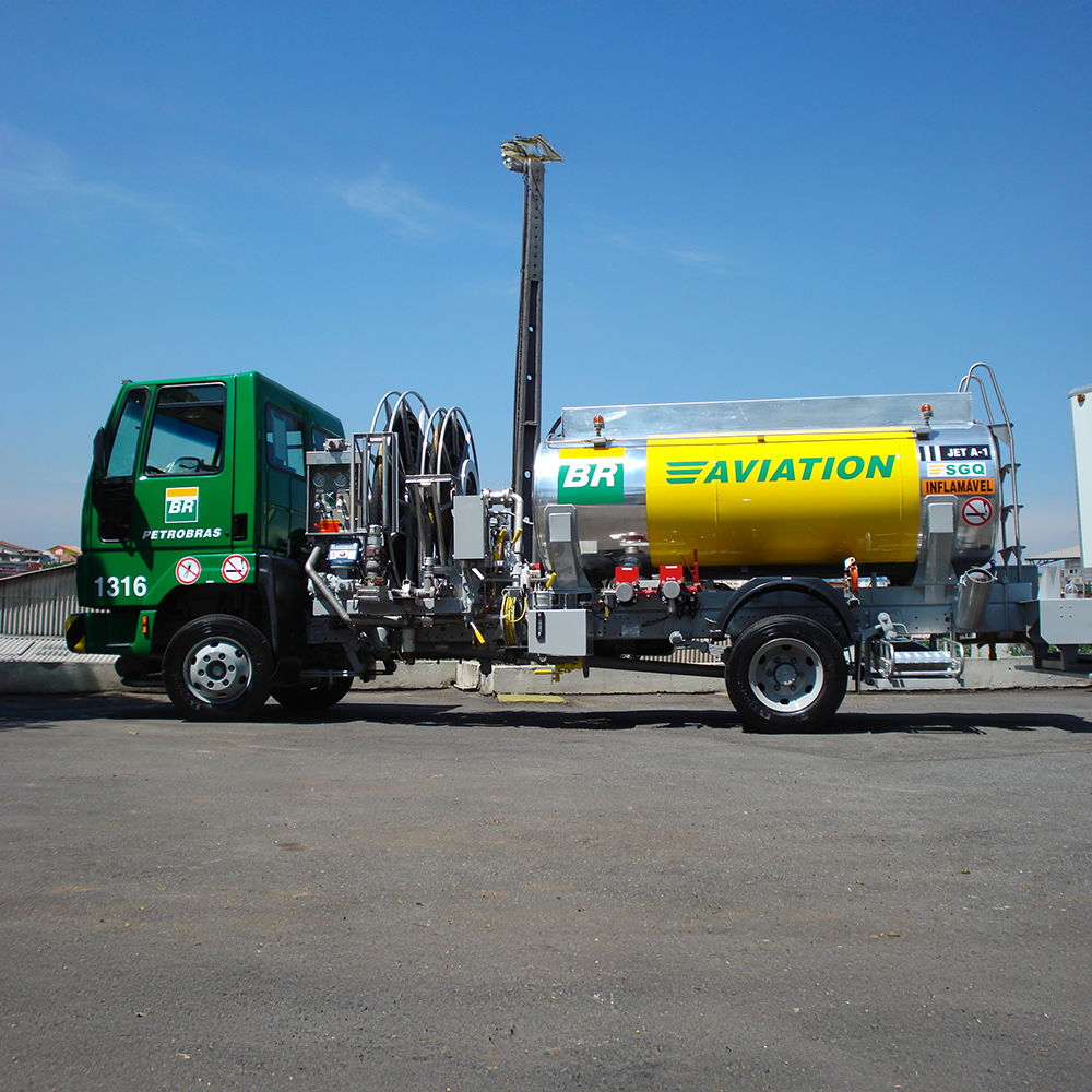Os tanques são fabricados em alumínio ou aço inoxidável, garantindo leveza, resistência e durabilidade. O módulo de abastecimento é composto por um sistema de bombeamento equipado com filtro separador e medidor de vazão com mostrador de leitura mecânica ou eletrônica, assegurando precisão e controle durante o processo.